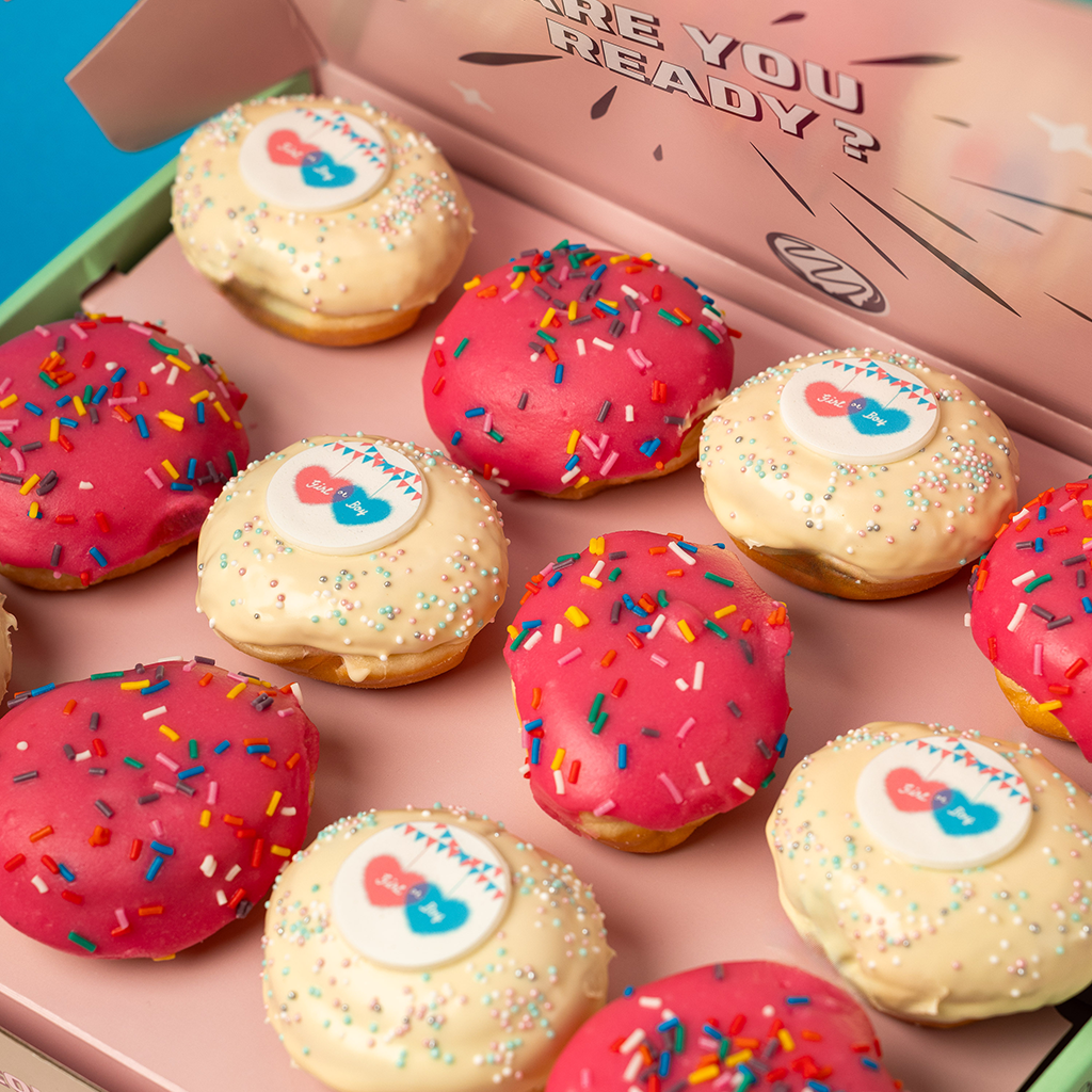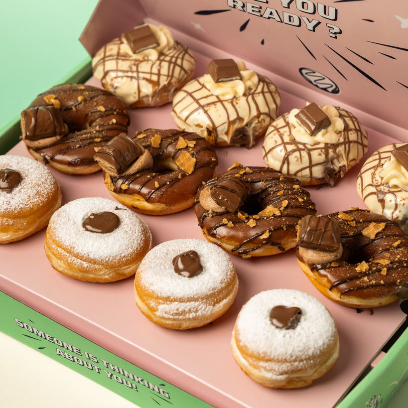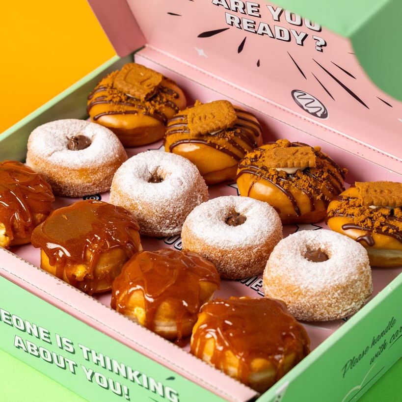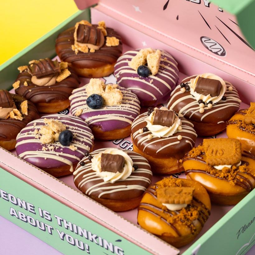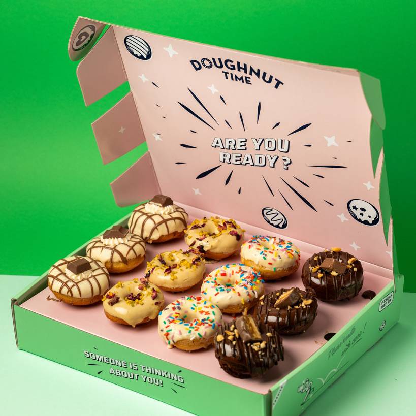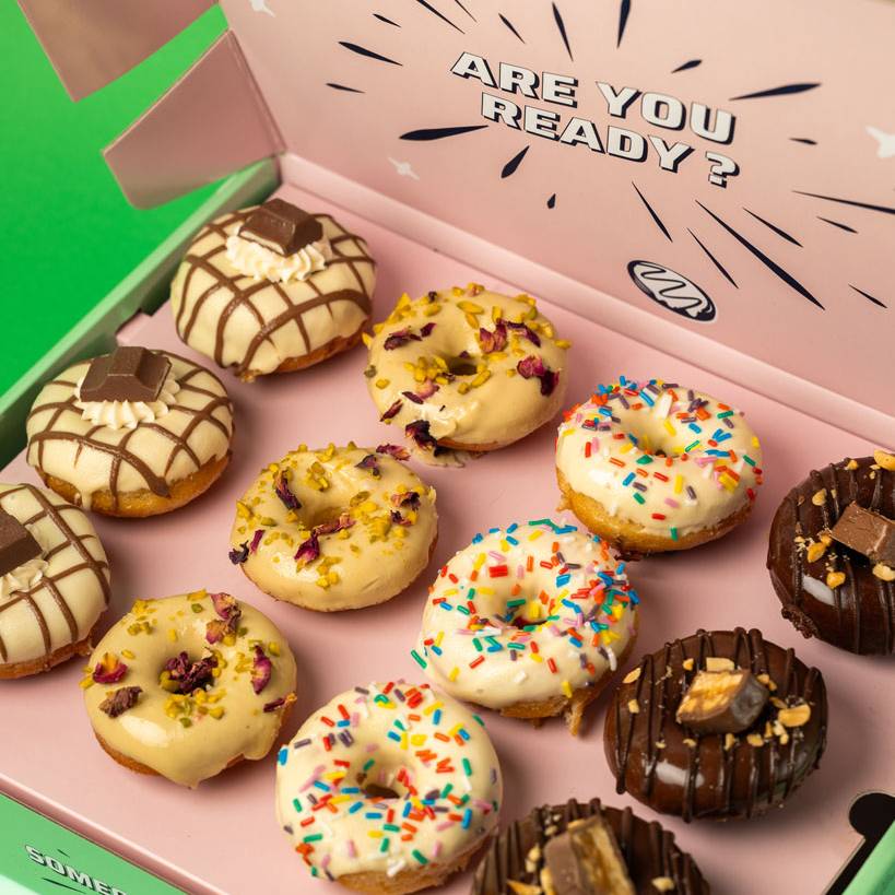 Immédiatement après la fabrication, nos donuts sont envoyés par courrier express. Notre boîte cadeau spécialement conçue les garde frais !