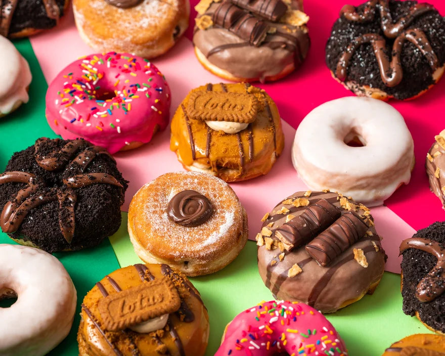 Nos donuts uniques sont frais et fabriqués à la main en petites quantités chaque jour. Pas de produits surgelés - et ça se sent !