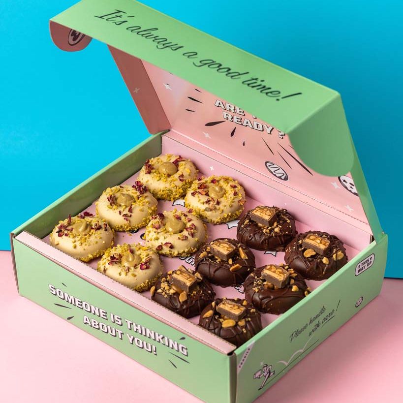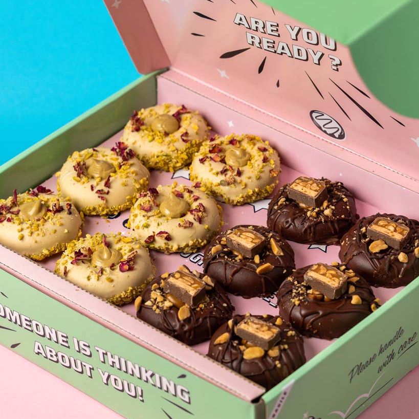 Nous livrons partout au Royaume-Uni, dans les pays de l'UE et aux États-Unis. Grâce à notre partenaire d'expédition DHL Express, les beignets arriveront chez toi en moins de 24 heures !