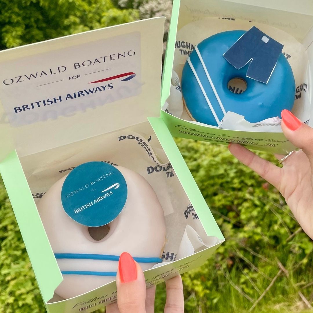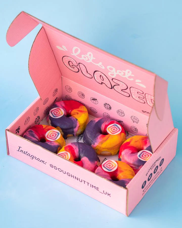 We are happy to add an edible topper with your logo to the donuts and match the color of the glaze. Customised packaging is also possible